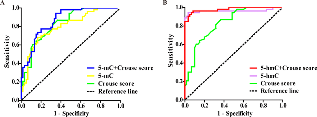 | 5-hmC+ Crouse score | 0.980 | 0.933–0.997 | 0.8789 | 0.17 | 96.23 | 91.67 | |||||||||||||||||||||||||||||||||||||||||||||||||||||||||||||||||||||||||||||||||||||||||||||