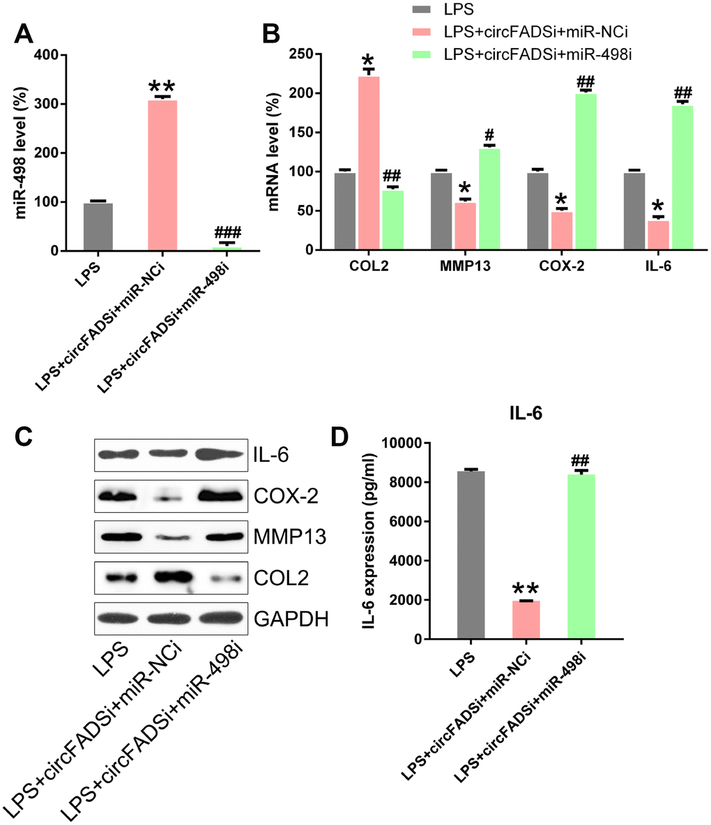 MiR-498 inhibitors restored the function of circFADS2 on LPS-induced chondrocytes.