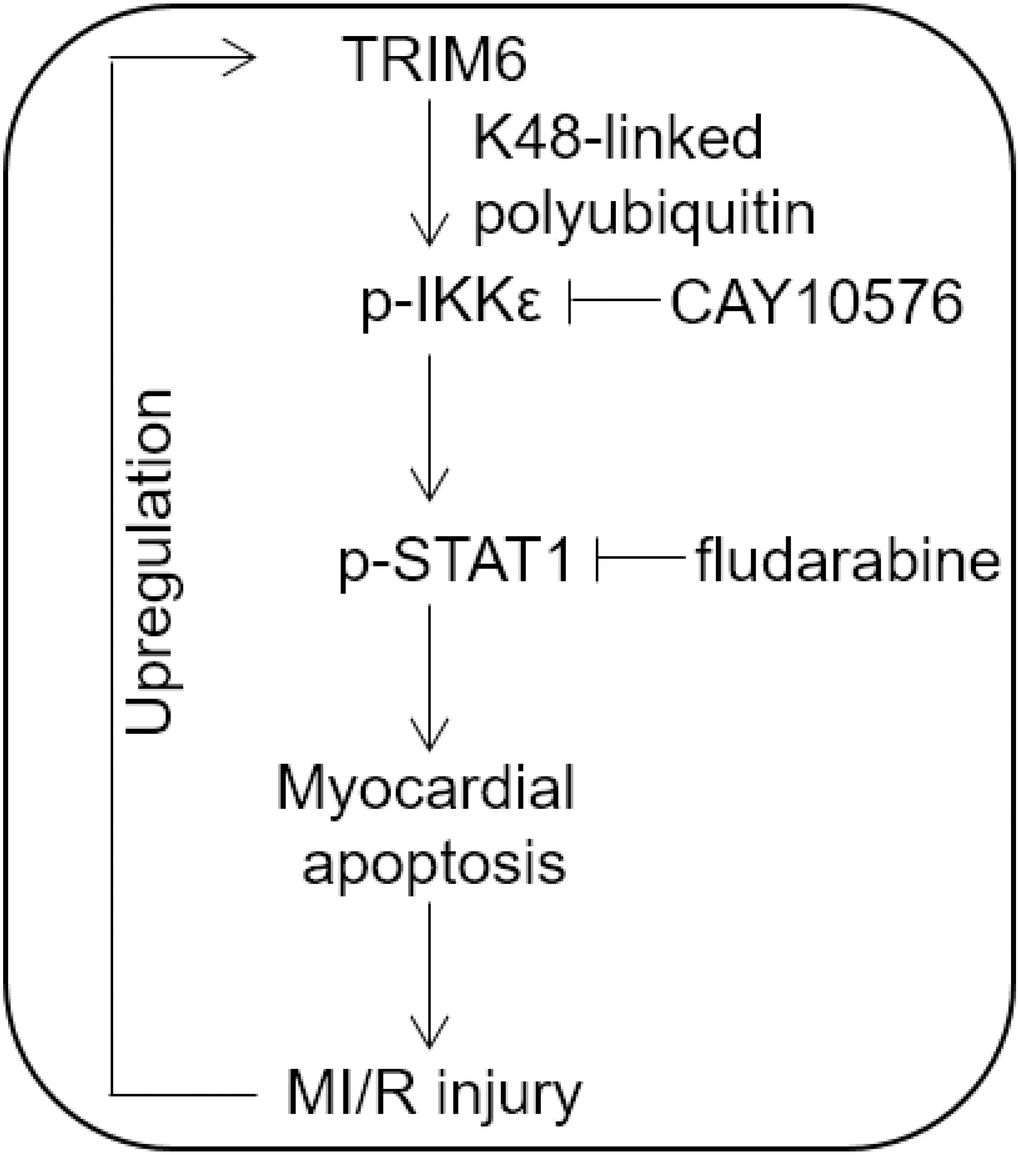 In summary, based on the results we obtained from the MI/R animal model, we propose here that inhibiting TRIM6 expression and/or activity or interfering IKKε-dependent STAT1 activation may present a potential therapeutic option in reducing the size of myocardial infarct and alleviating MI/R injury.