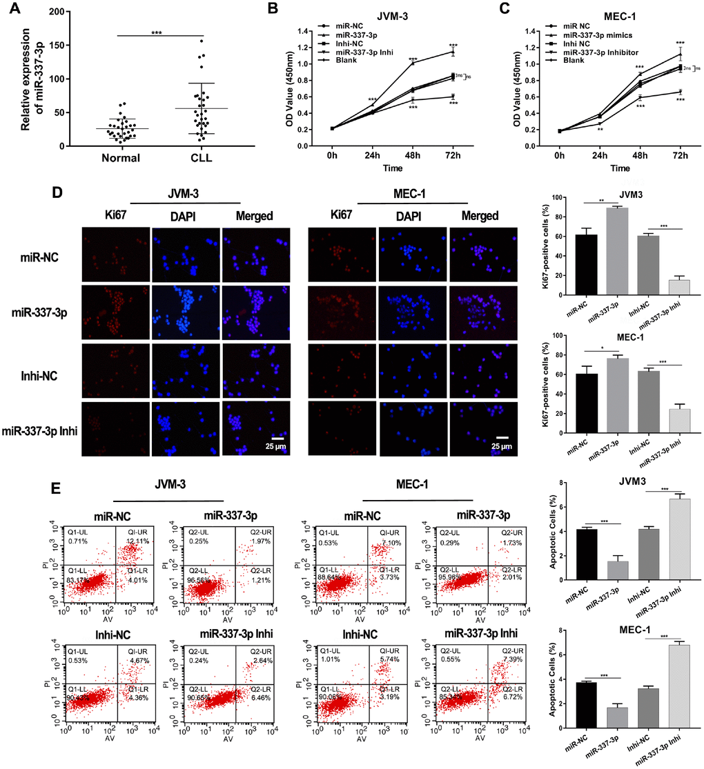 miR-337-3p upregulated in CLL, promoted cell proliferation and inhibited cell apoptosis