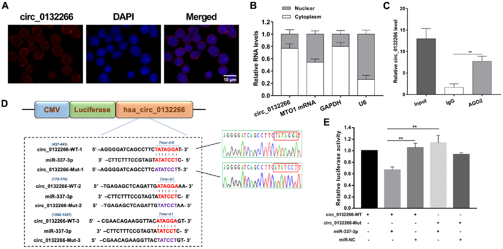 Taken together, our data revealed that circ_0132266 possessed miRNA-binding sites and acted as a sponge of miR-337-3p.