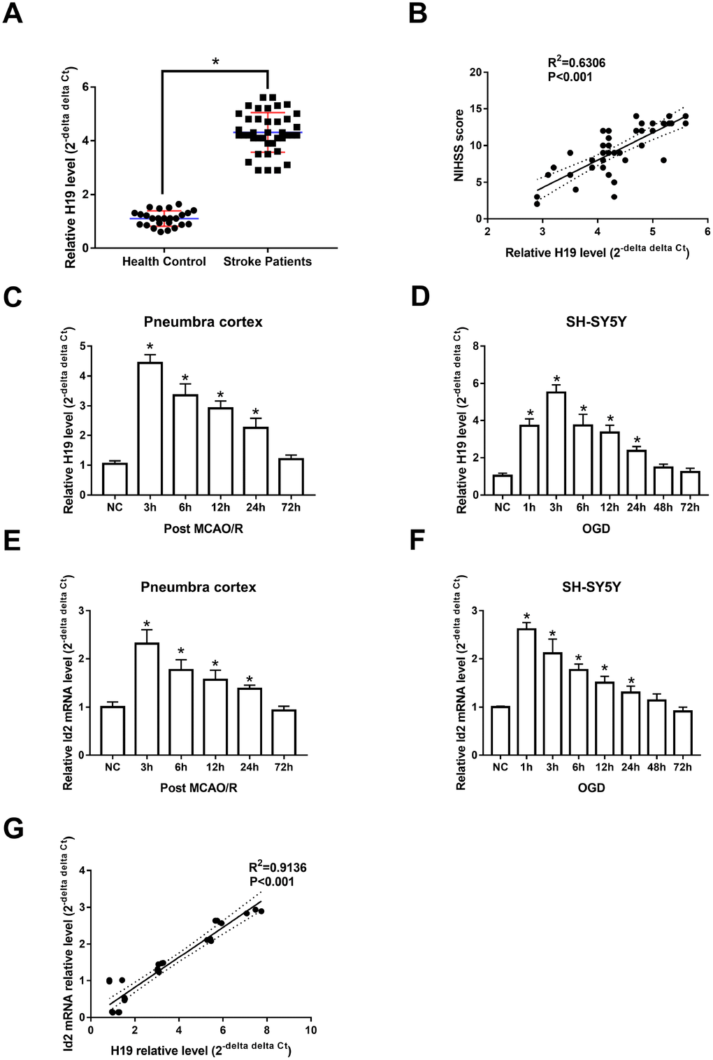 H19 level was also elevated in the penumbra area of MCAO/R rats, as well as in OGD neuronal cells