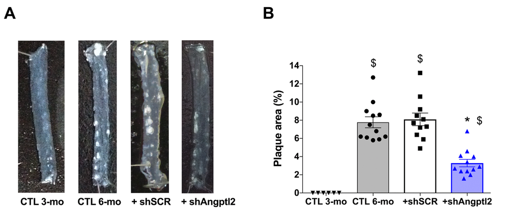 Vascular angptl2 knockdown decreases atherosclerotic plaque size