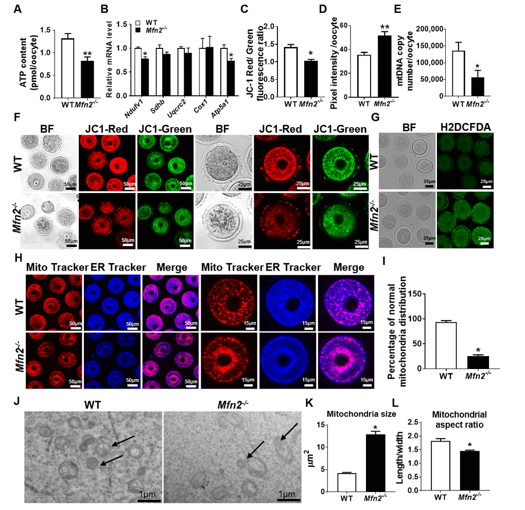 Targeted deletion of Mfn2 in oocytes results in mitochondrial dysfunction