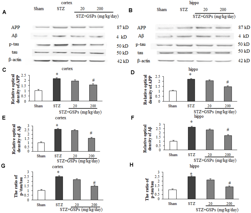 GSPs attenuated STZ-induced Aβ production and tau phosphorylation