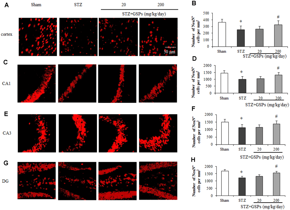 GSPs counteracted neuron loss induced by STZ in mouse cerebral cortex and hippocampus