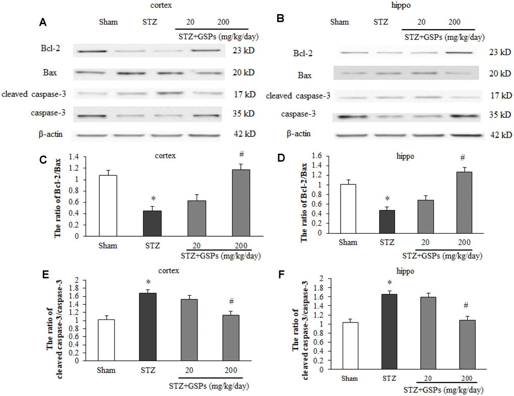 GSPs counteracted apoptotic cell death induced by STZ in mouse cerebral cortex and hippocampus
