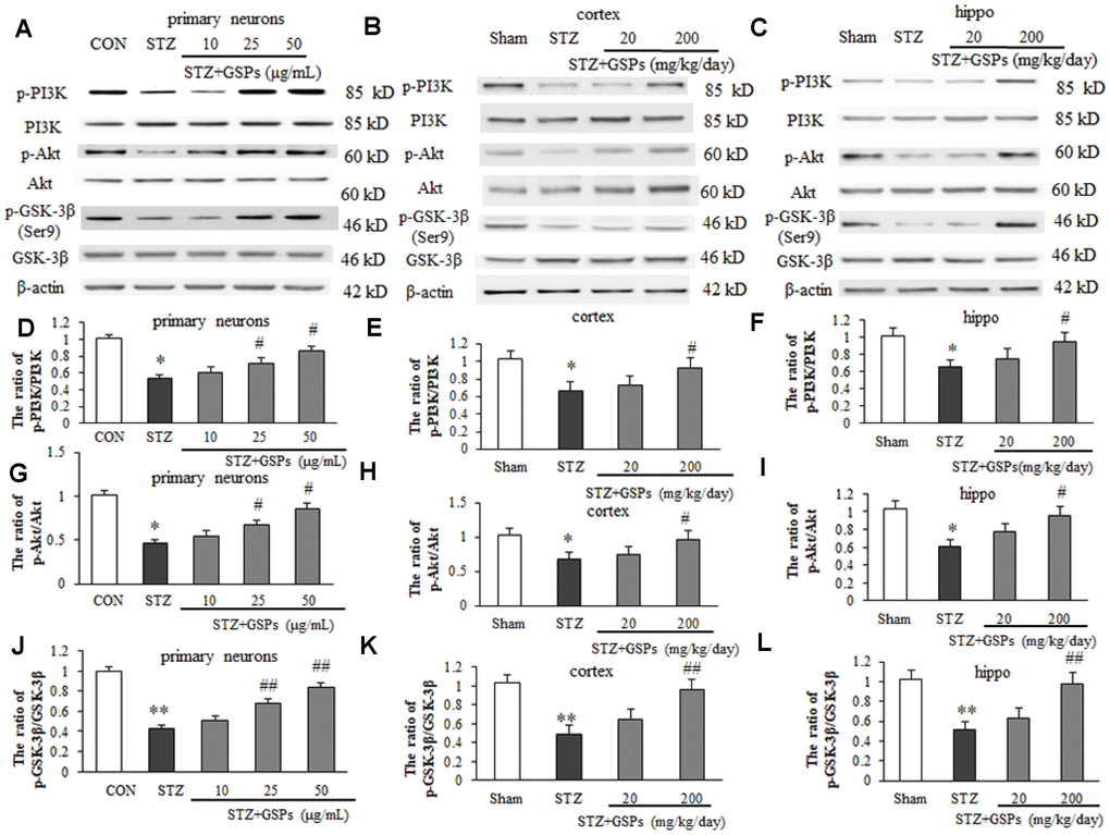 GSPs enhanced phosphorylation of PI3K-Akt-GSK-3β (Ser9) pathway in vitro and in vivo