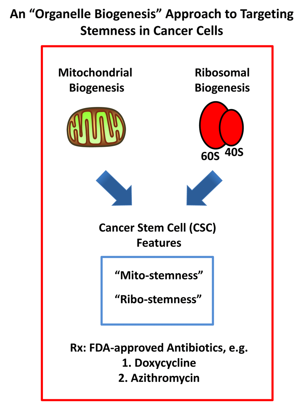 - 8. Lamb R, Ozsvari B, Lisanti CL, Tanowitz HB, Howell A, Martinez-Outschoorn UE, Sotgia F, Lisanti MP. Antibiotics that target mitochondria effectively eradicate cancer stem cells, across multiple tumor types: treating cancer like an infectious disease. Oncotarget. 2015; 6:4569–84. https://doi.org/10.18632/oncotarget.3174 [PubMed]