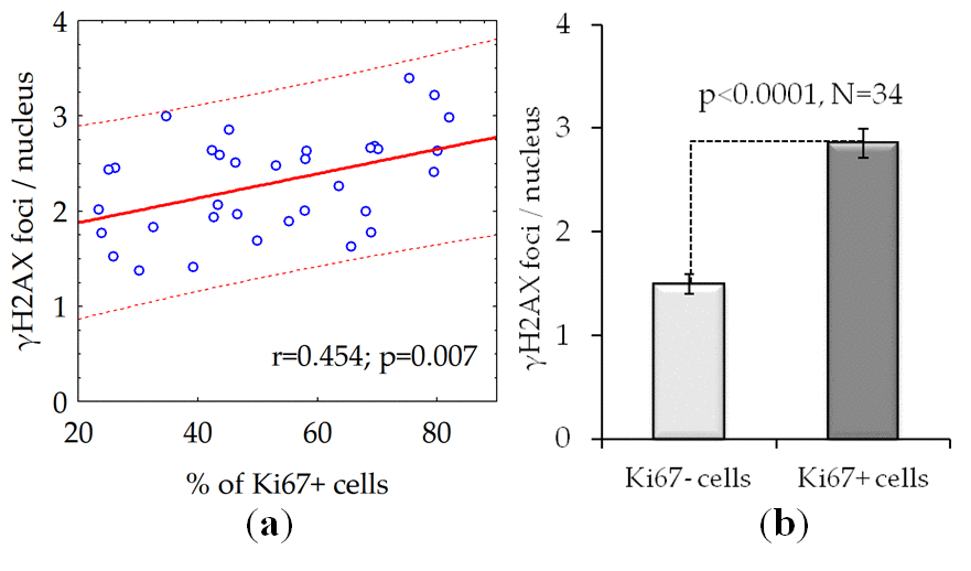 Immunocytochemical analysis of γH2AX foci and Ki67 +/- cells