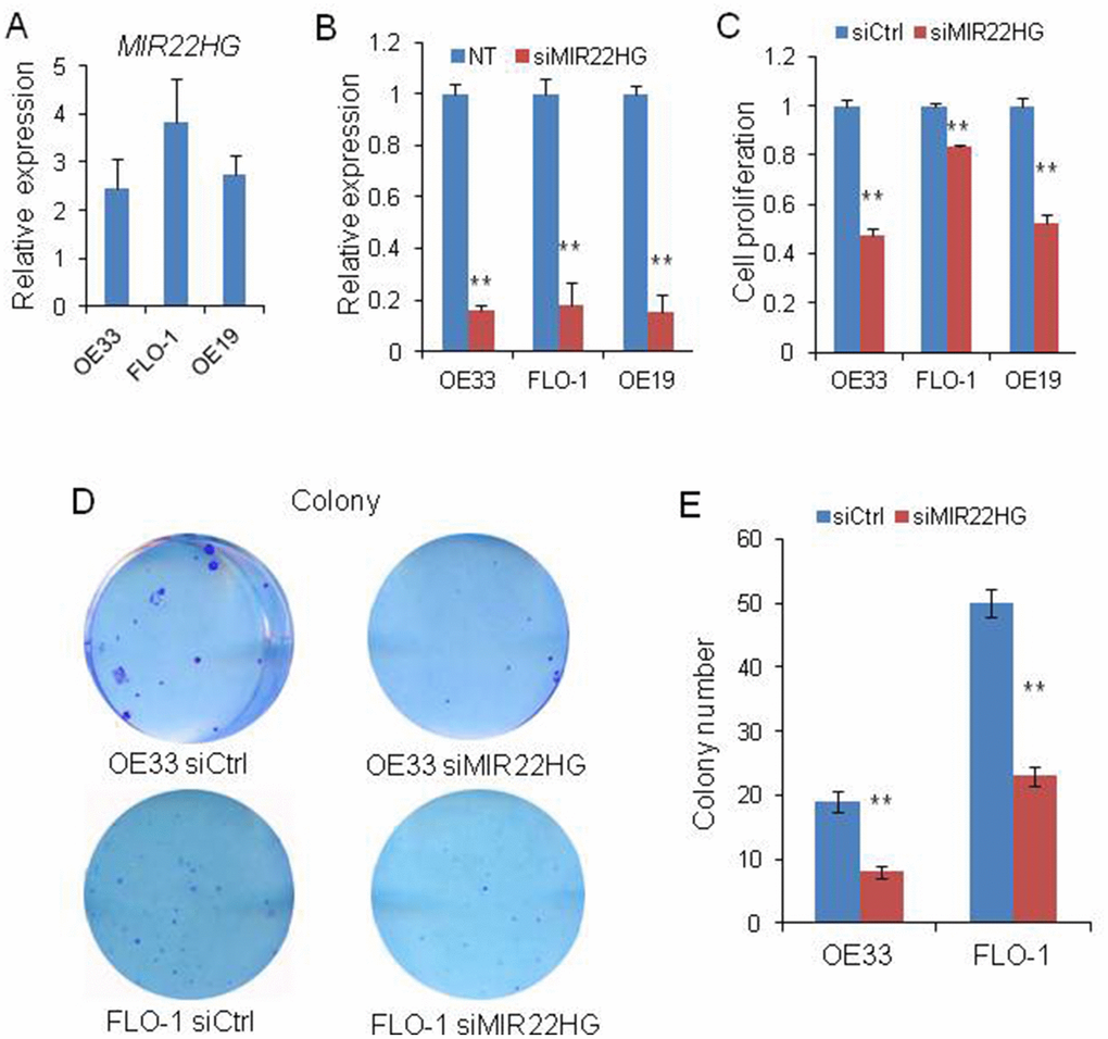 Knockdown of MIR22HG suppresses cell proliferation in EAC cells