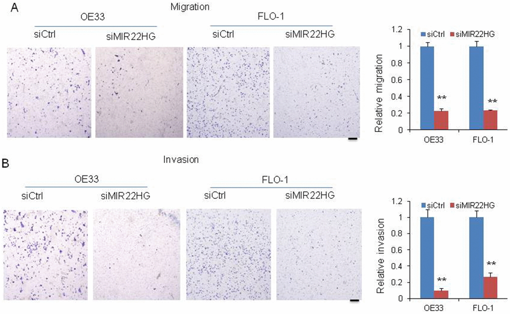 Knockdown of MIR22HG inhibits EAC cell migration and invasion