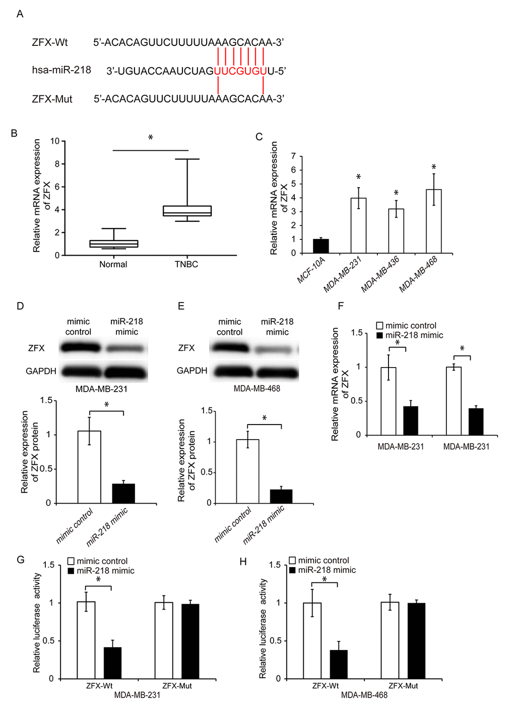 MiR-218 inhibits TNBC cell proliferation, migration, and invasion by targeting ZFX