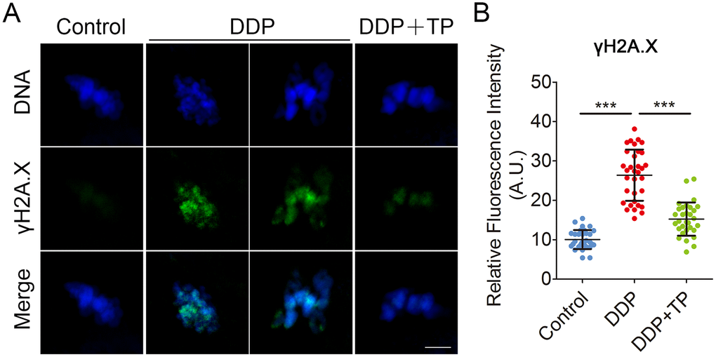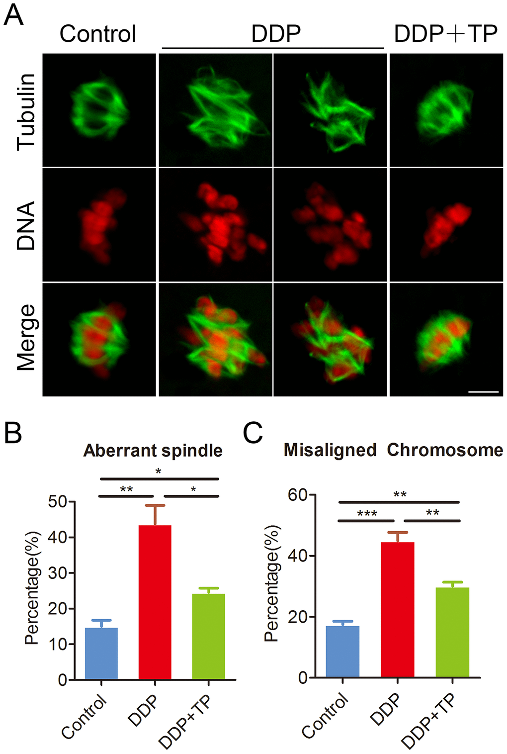 TP recovers the defects of spindle/chromosome structure in DDP-exposed oocytes