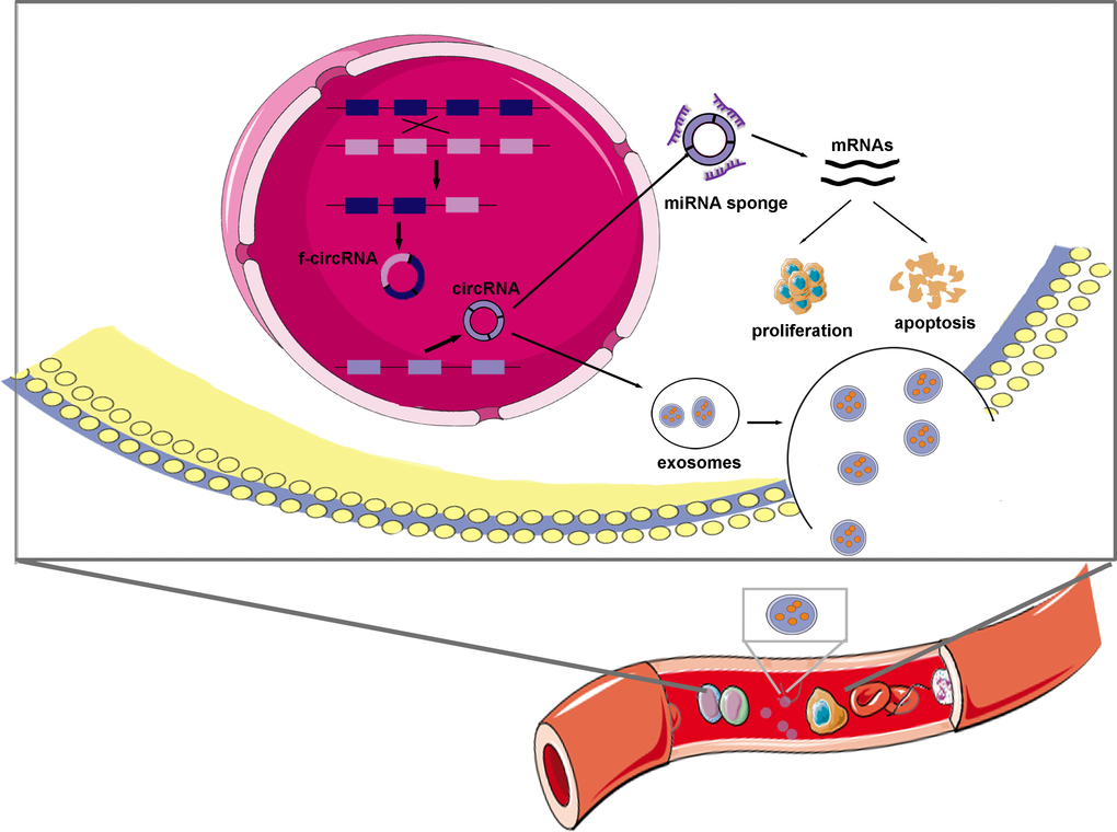 Chronic myeloid leukemia (CML) is a clonal myeloproliferative neoplasm originating from abnormal pluripotent stem cells. The oncogene BCR-ABL1 which encodes a hyperactive tyrosine kinase is the major molecular factor for the pathogenesis of CML [71]. Imatinib, a specific tyrosine kinase inhibitor (TKI), has brought hope for the majority of CML patients. A small proportion of patients, however, have developed resistance to imatinib [72]. Recently, circRNAs have been implicated in the progression of CML and development of TKI resistance and opened up new opportunities for CML therapy.