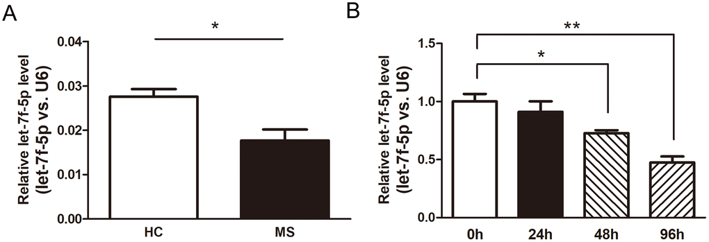 Downregulation of let-7f-5p expression in peripheral blood CD4+ T cells from MS patients and during the process of Th17 differentiation