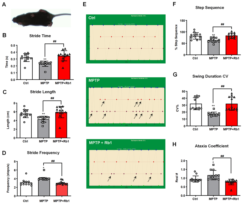 Ginsenoside Rb1 mitigates MPTP-induced altered gait parameters in mice