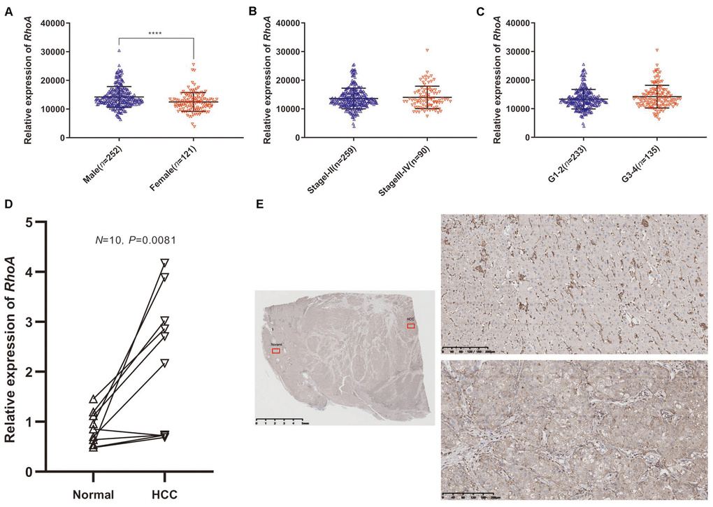 RhoA is commonly upregulated in HCC tissues, and both high mRNA expression and high protein expression levels are associated with poor prognosis. Notably, RhoA protein levels serve as a diagnostic biomarker for HCC.