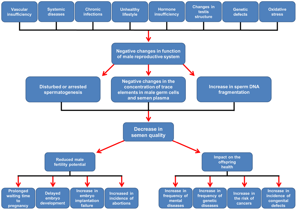 Infertility has become a worldwide problem, affecting up to 20% of couples trying to conceive [1, 2]. In this context, a few important facts should be emphasized: 1) male factors (coexisting with female factors) contribute to infertility in up to 20–70% of cases, and one-third of these cases are due to male factors alone [1–3]; 2) an actual decline in semen quality over the past decades has been observed globally [4]; and 3) paternal age is rising, as an increasing number of men are decide to became a father at an older age [5, 6].