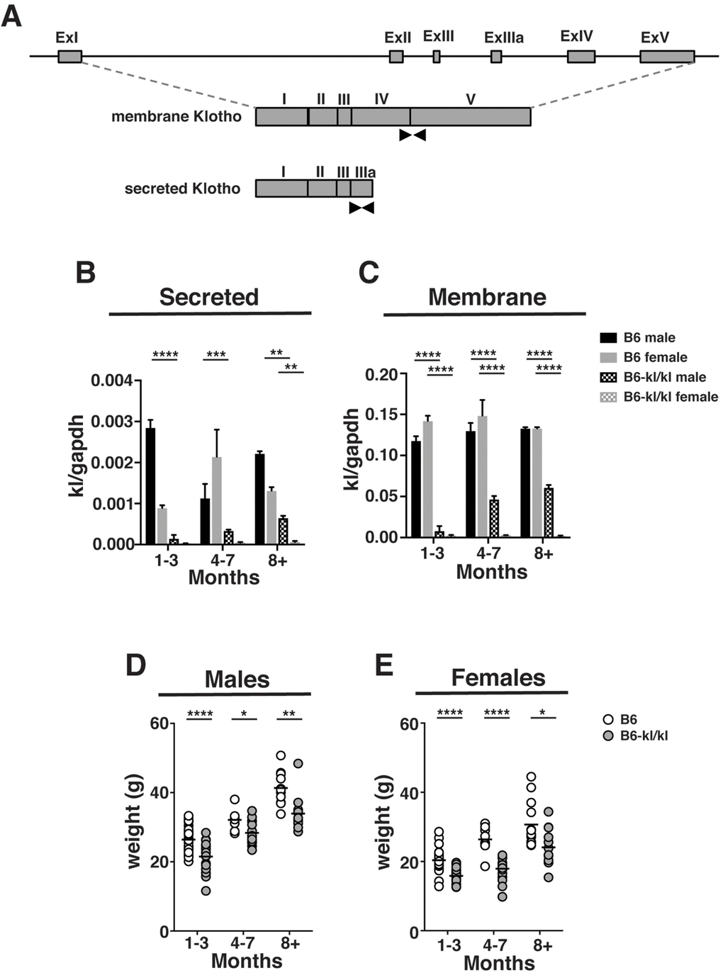 The decrease in Klotho expression results in lower body weight in the B6-kl/kl mice
