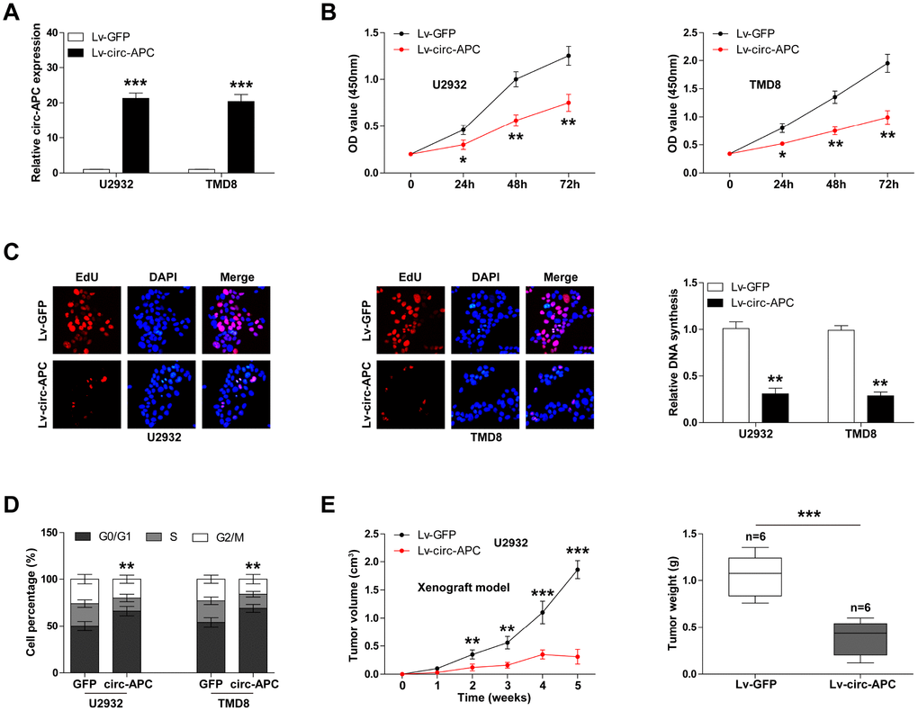 Exogenous expression of circ-APC inhibits DLBCL cell proliferation both in vitro and in vivo