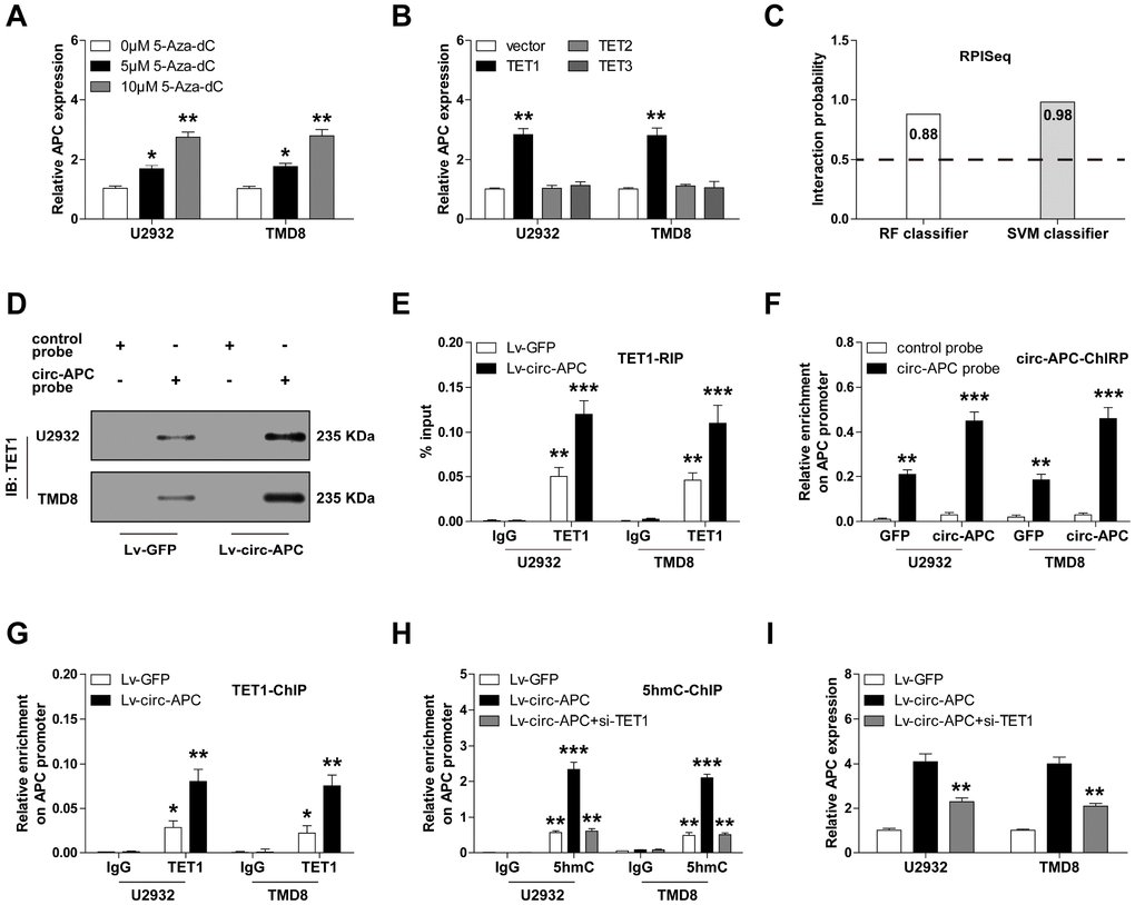 Circ-APC physically binds to the APC promoter and recruits DNA demethylase TET1 in DLBCL