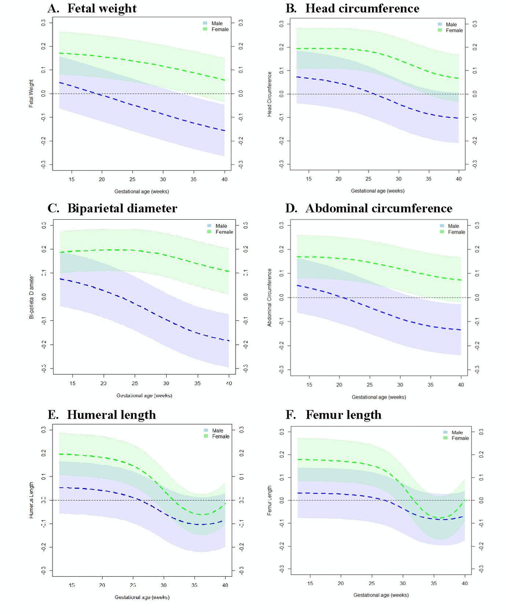 | Fetal growth measure | Male fetus | Female fetus | |||||||||||||||||||||||||||||||||||||||||||||||||||||||||||||||||||||||||||||||||||||||||||||||||