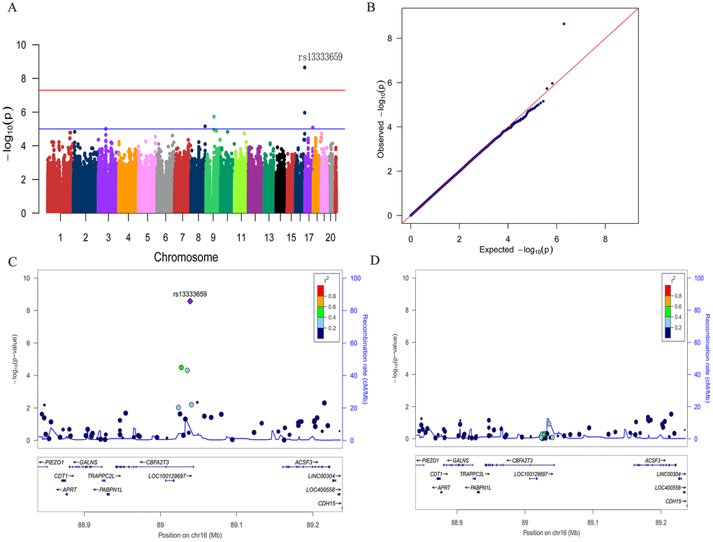 | 16 | rs57706252 | CBFA2T3 | 89030609 | Intron | C/T | 0.167 | −0.029 | 1.09×10−6 | |||||||||||||||||||||||||||||||||||||||||||||||||||||||||||||||||||||||||||||||||||||||||||