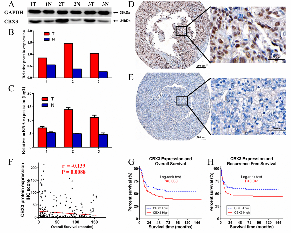 IHC staining of CBX3/HP1γ in HCC tissue and its prognostic value in HCC patients