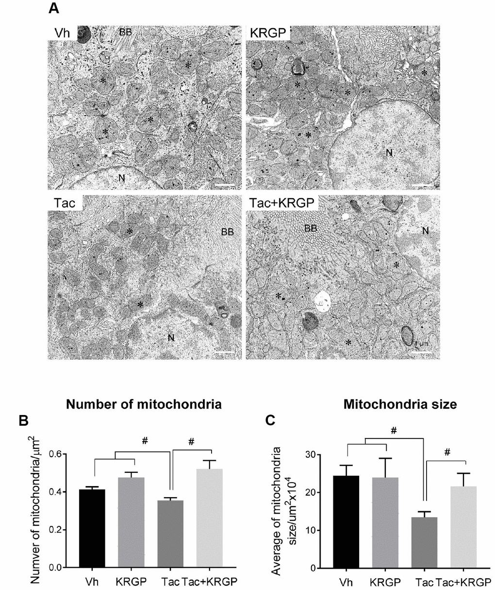 Effect of KRGP on Tac-induced mitochondrial ultrastructure