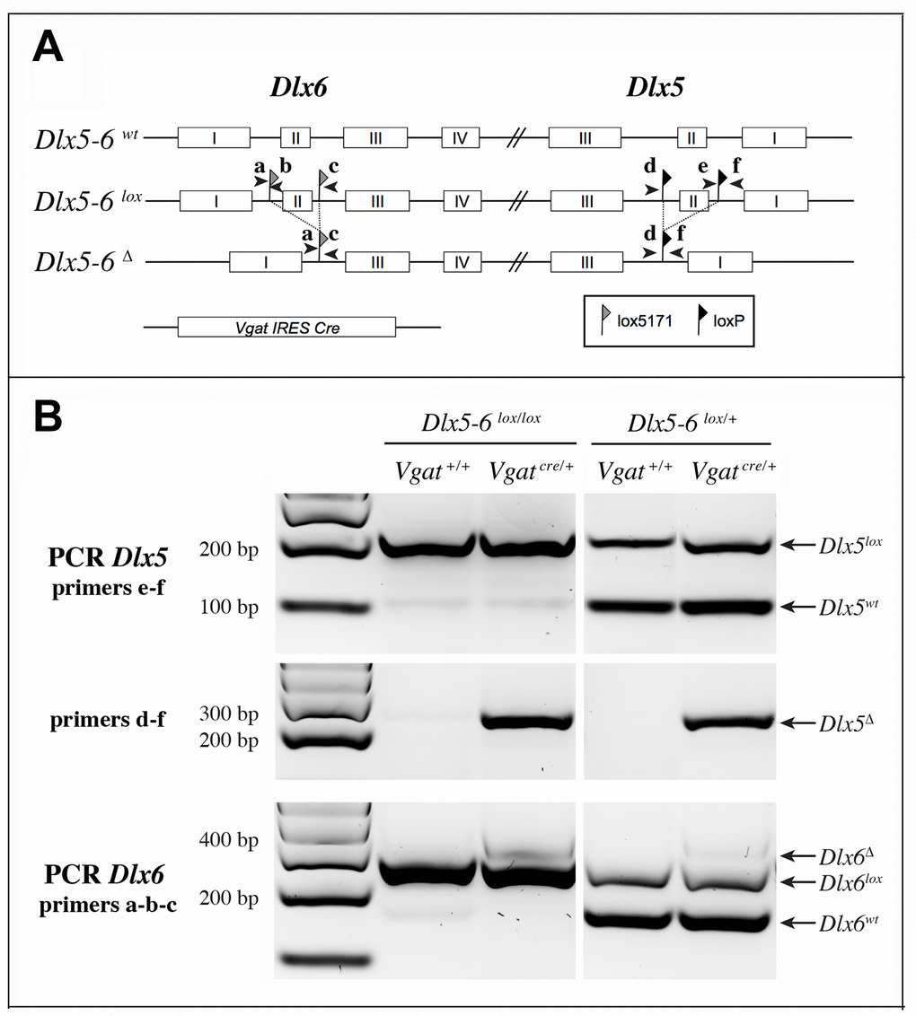 For genotyping, DNA was extracted from mice tails using a KAPA express extraction kit (Kapa Biosystems, Sigma, France). Control, VgatΔDlx5-6/+ and VgatΔDlx5-6mice were genotyped by PCR using allele-specific primers using TAKARA Ex Taq (Takara).
