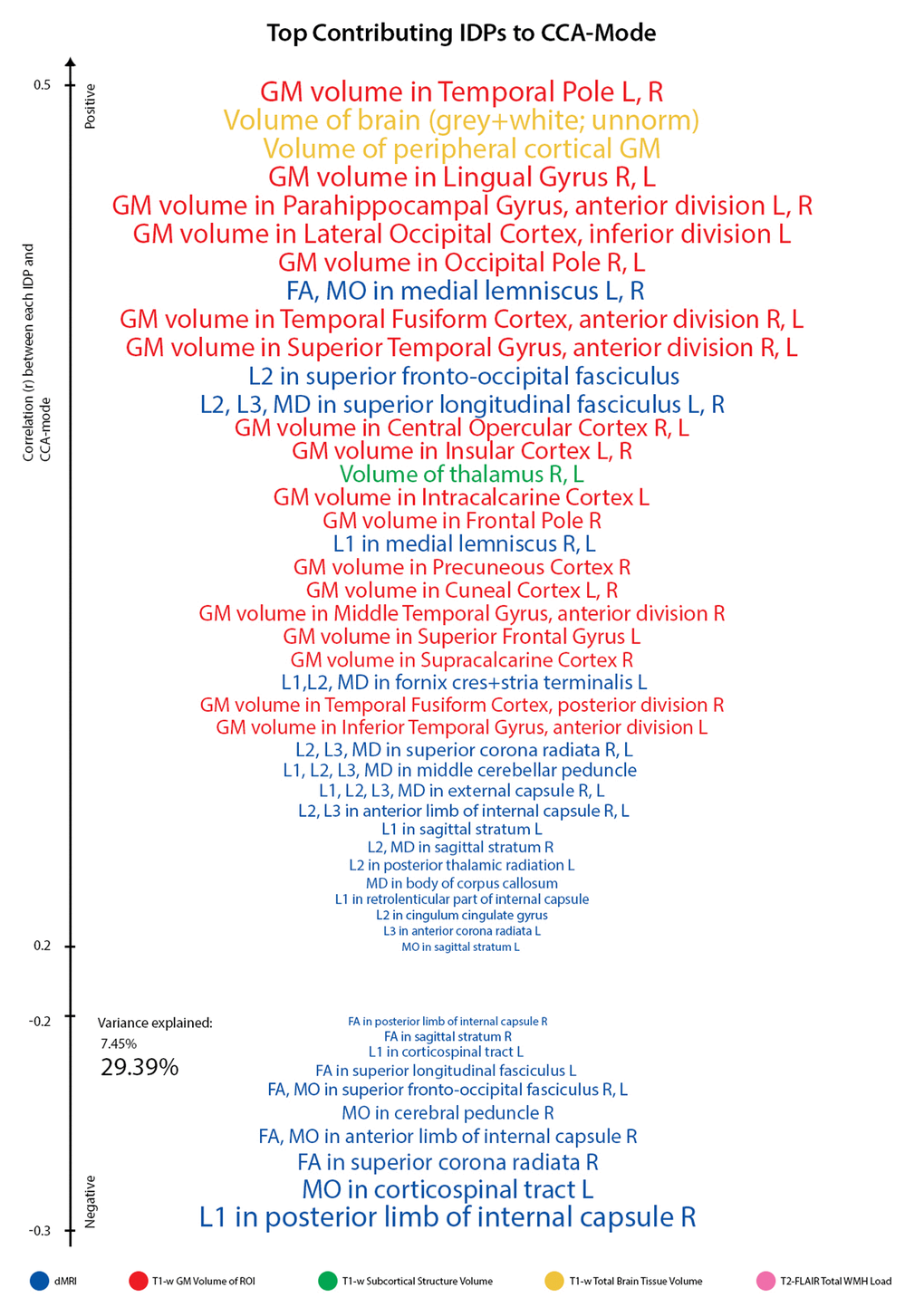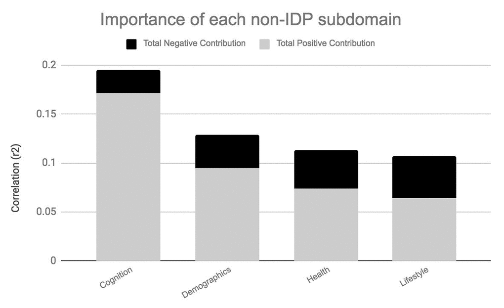 Considering this, our primary focus was to explore the factors—general health, vascular, demographic and lifestyle—that contribute to normative brain and cognitive aging. Crucially, we are not interested in just the age-dependence in any individual physiological or behavioral component, but a holistic range of endogenous and exogenous influences accrued across the lifespan. To achieve this, we distinguish between life course influences that act to preserve health (“positive influences”) versus those that are implicated in its demise (“negative influences”). This approach has the potential to identify specific brain and cognitive patterns that may underlie differential aging trajectories, whilst simultaneously exposing the relation of these patterns to a broad range of modifiable risk and protective factors. By modelling multiple variables of multiple modalities simultaneously we provide a more precise estimate of their synergetic effects filling a gap in the existing aging literature. Furthermore, our inclusion of both bivariate and multi-level analyses allows for both specific and general relations to be explored, which are potentially more informative than either approach alone. Specifically, this study goes beyond just investigating the interrelations among a selection of variables; rather, we are seeking specific age-related patterns of brain structure that are associated to sets of correlated cognitive, demographic, health, and behavior variables, as brain-behavior modes of population covariation.