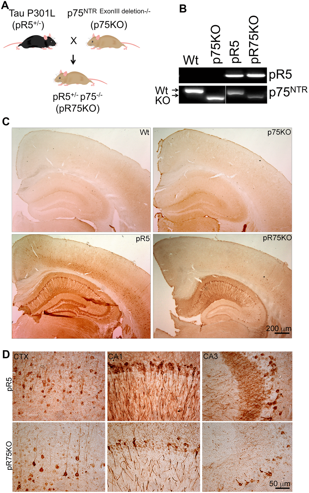 Knockout p75NTR in pR5 mice reduced Tau staining in the brain