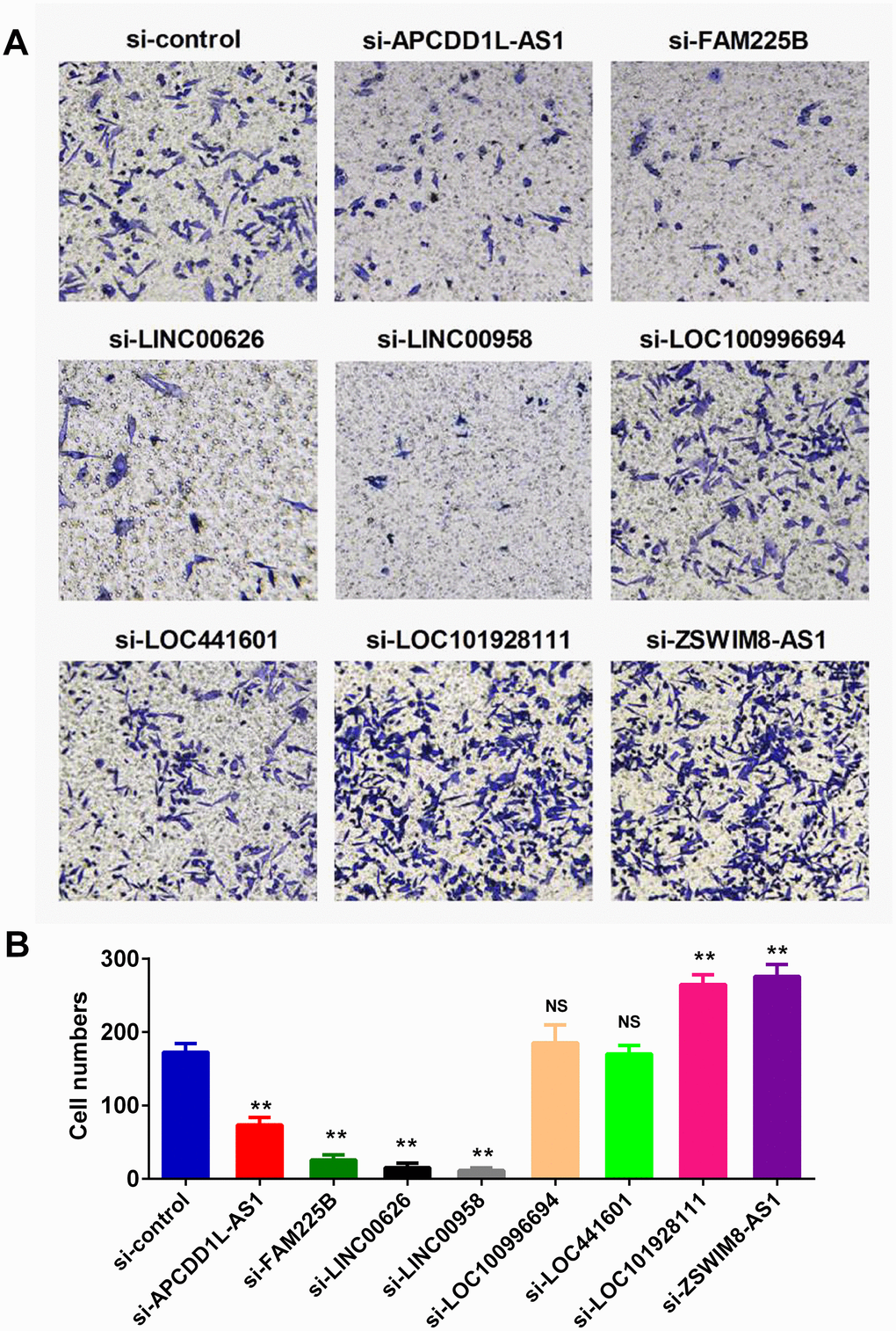 The eight lncRNA signature regulates the invasion ability of BLCA cell lines