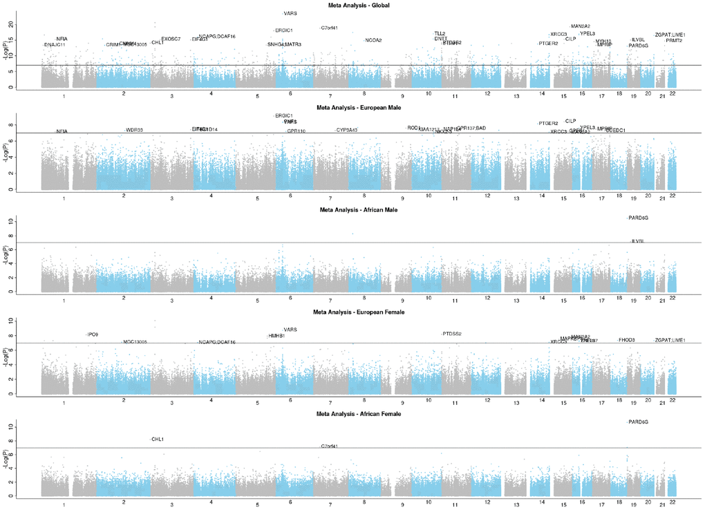 | Global meta Z (P) n=5,713 | European male Z (P) n=1,389 | African male Z (P) n=697 | European female Z (P) n=2,095 | African female Z (P) n=1,532 | |||||||||||||||||||||||||||||||||||||||||||||||||||||||||||||||||||||||||||||||||||||||||||||||