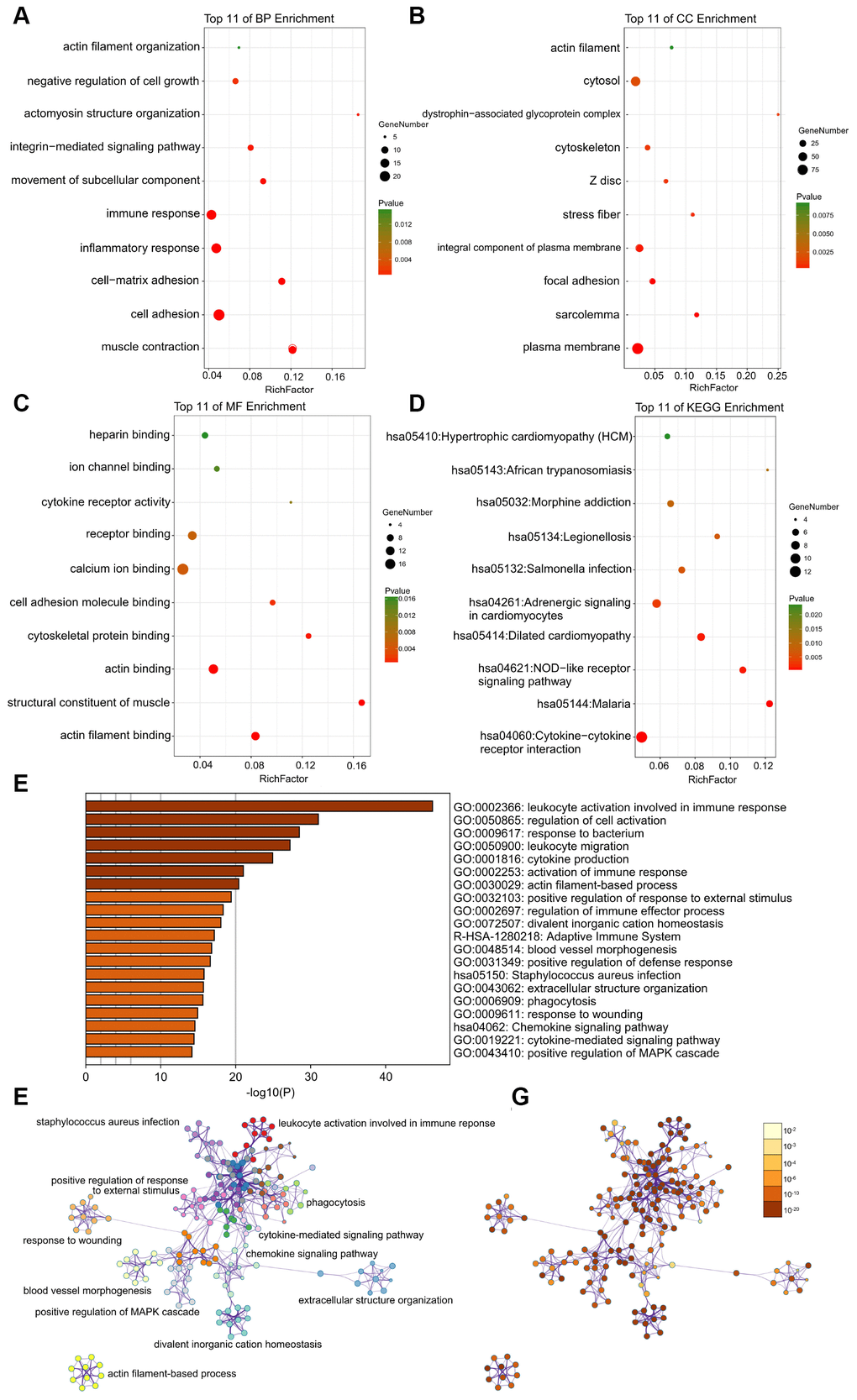 What’s more, the enrichment analysis of metascape also demonstrates that the DEGs between control and atherosclerosis were markedly enriched in the actin filament-based process (Figure 3E–3G).