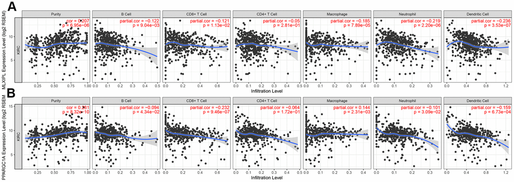 Table 3. Correlation analysis between MLXIPL and PPARGC1A and immune cell infiltrations for ccRCC.