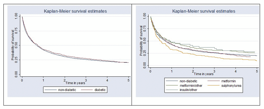 Cohort members were classified into five groups: four groups of T2DM (referred to as diabetes in this study) patients according to treatment: metformin users; metformin and other medication users; sulphonylurea users; insulin and other medication (except for metformin) users; and non-diabetic group.