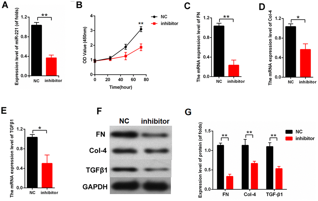 Thus, we identified lncRNA GAS5 as an important negative regulator in DN progression. lncRNA GAS5 inhibited cell proliferation and fibrosis in DN by sponging miR-221 and modulating SIRT1 expression. This lncRNA GAS5/miR-221/SIRT1 network may shed light on the development of DN and may contribute to therapeutic targeting for DN.