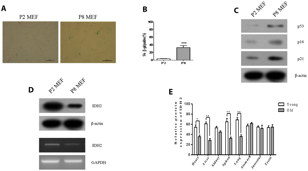 Idh2 expression is decreased in senescent MEFs and tissues