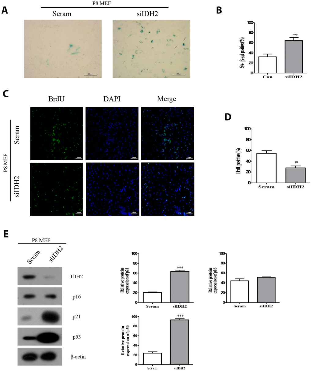 Downregulation of Idh2 accelerates senescence in MEFs