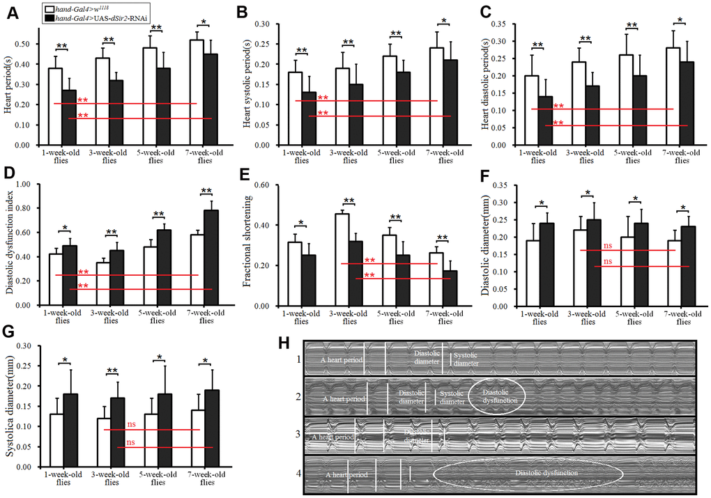 Cardiac dSir2 knockdown promotes heart aging in Drosophila