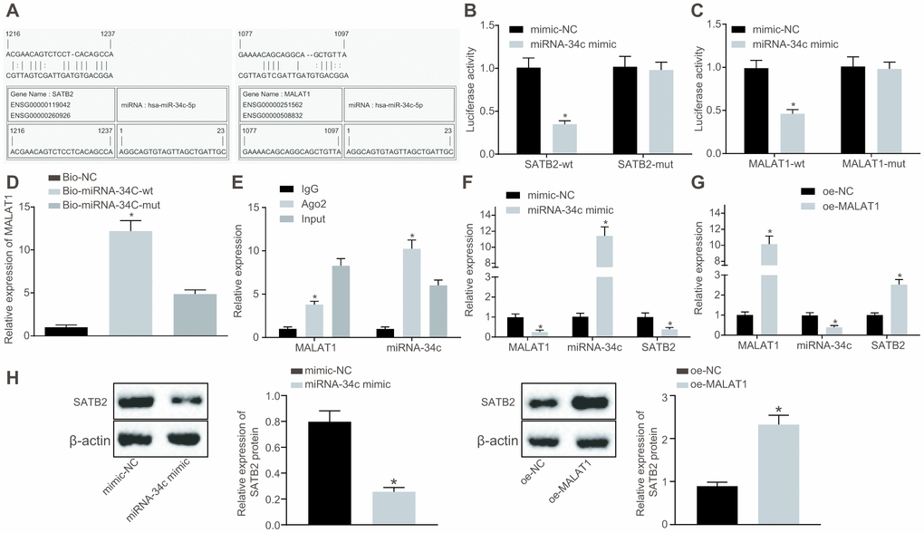 MALAT1 promotes the expression of SATB2 by binding to miR-34c
