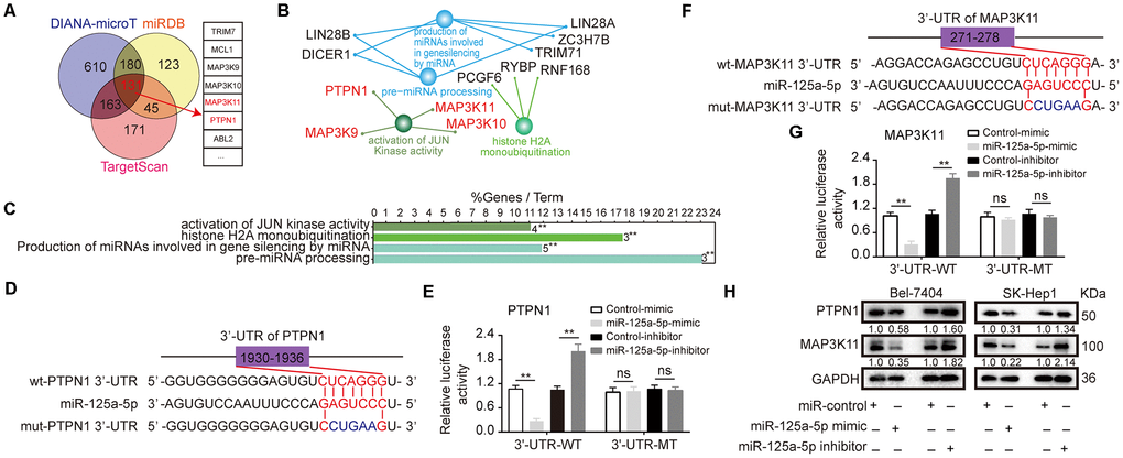 miR-125a-5p suppresses PTPN1 and MAP3K11 expression via the MAPK signaling pathway in HCC
