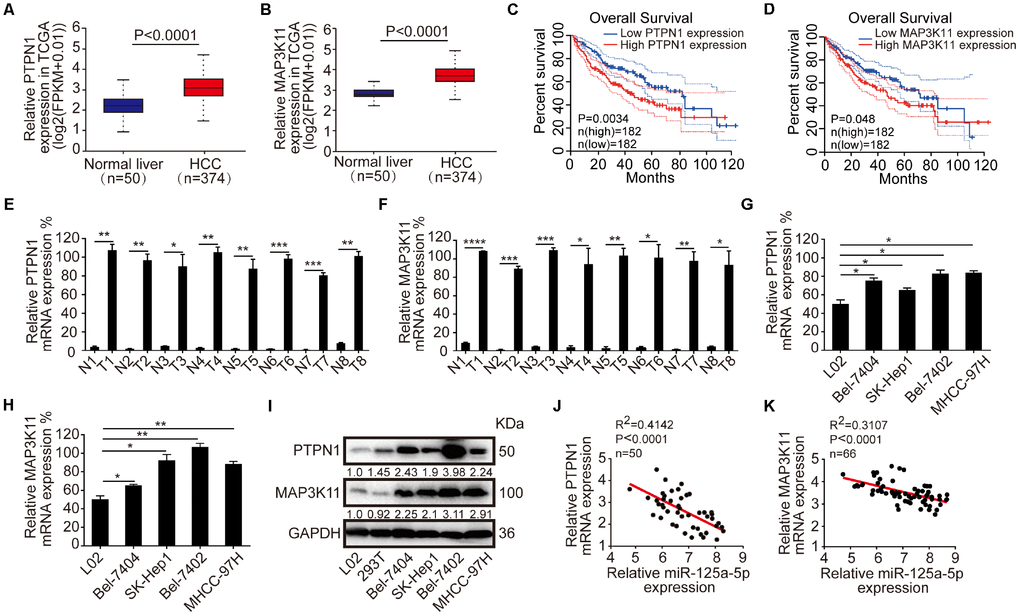 PTPN1 and MAP3K11 are direct targets of miR-125a-5p in HCC