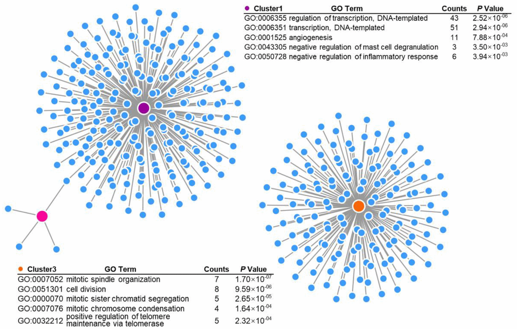 Clinical characteristics, transcriptome sequencing data and molecular data were downloaded from The Cancer Genome Atlas (TCGA) as a validation set (https://cancergenome.nih.gov/) [32]. Differentially expressed genes were screened using a significant analysis of microarray (SAM) algorithm. Genes with an adjusted P value < 0.05 were regarded as candidate differential genes and subjected to Gene Ontology (GO) analysis using the online tool Database for Annotation, Visualization, and Integrated Discovery (DAVID, https://david.ncifcrf.gov/) [33]. The GO results were visualized with the BiNGO plugin imbedded in Cytoscape software (version 3.7.1).