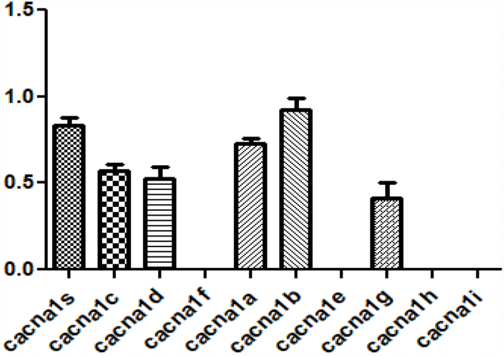 CACNA1S that is most relevant to changes in aging-related ECM is one of the subtypes of voltage-gated calcium channels subunit alpha1 (CACNA1). CACNA1 is the primary function unit of the calcium channel and has 10 sub-types [15]. So, the expression of other hCACNA1 subtypes was investigated in hVFFs. hCACNA1B, hCACNA1S, and hCACNA1A are highly expressed compared to other subtypes (Figure 4).