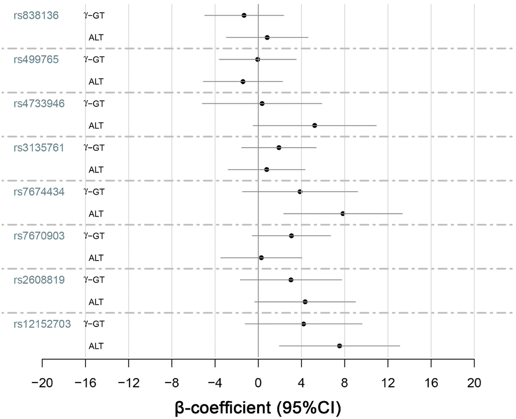 | γ-GT | KLB | rs7674434 | G | 2.77 | 2.15 | 0.032 | |||||||||||||||||||||||||||||||||||||||||||||||||||||||||||||||||||||||||||||||||||||||||||||