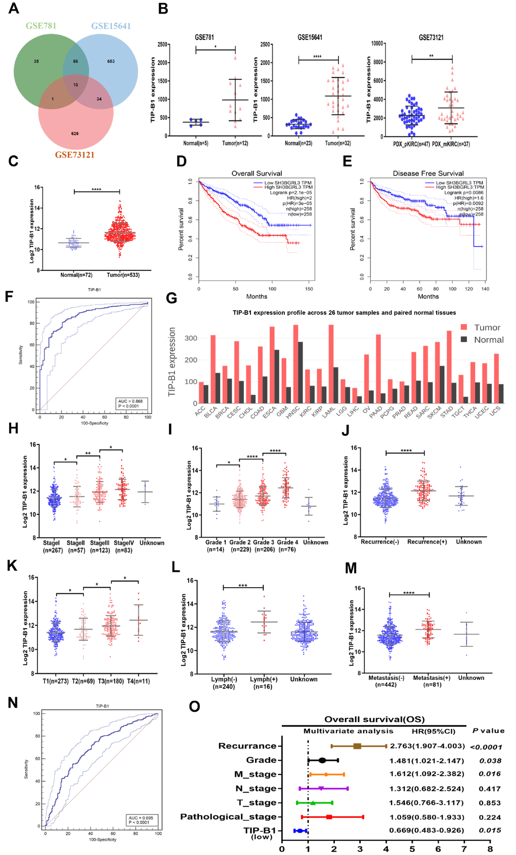 TIP-B1 is overexpressed in KIRC and has aggressive clinicopathological prediction trait