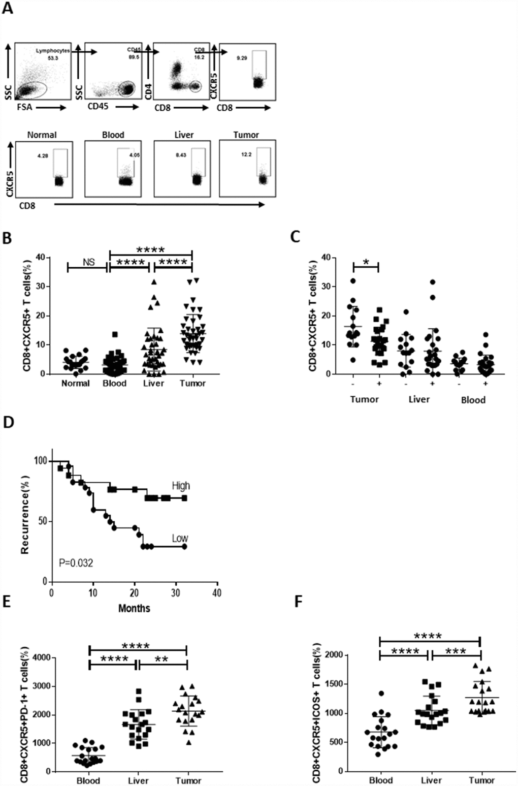 High infiltration of CD8+CXCR5+ T cells into HCC tumors predicts a better prognosis